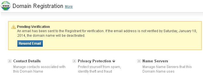 The above requirement is applicable for all gTLD domain names registered after 1 January, 2014. Domain names registered / transferred prior to this date are not subject to this verification process, unless the associated Registrant Contact email address is modified to an unverified email address.