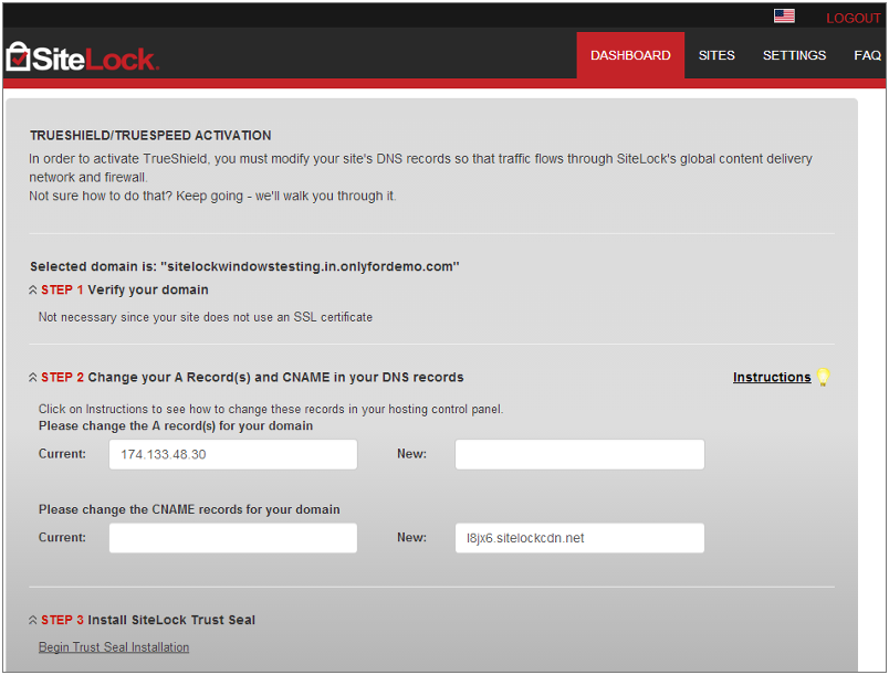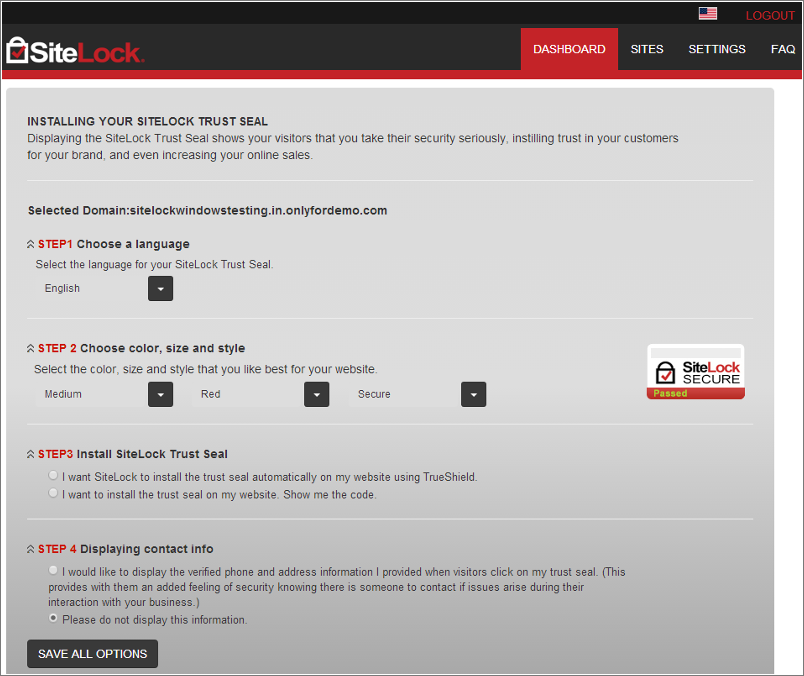 You can display the SiteLock TrustSeal on your website through the below link which appears in the lower section of your SiteLock Dashboard.