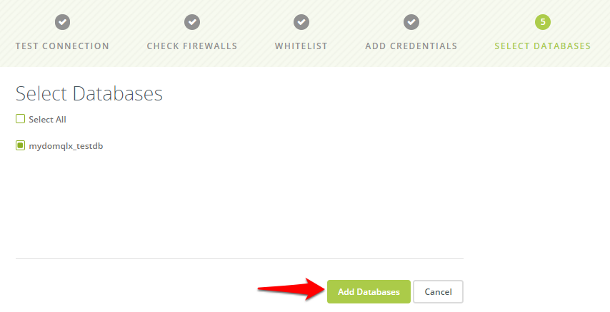 7. Select the database to be added and click on the Add Databases button. CodeGuard will then start an initial backup process.