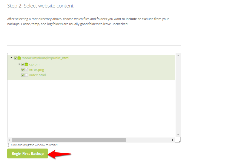 6. Select the files you want to backup and click on the Begin First Backup button.