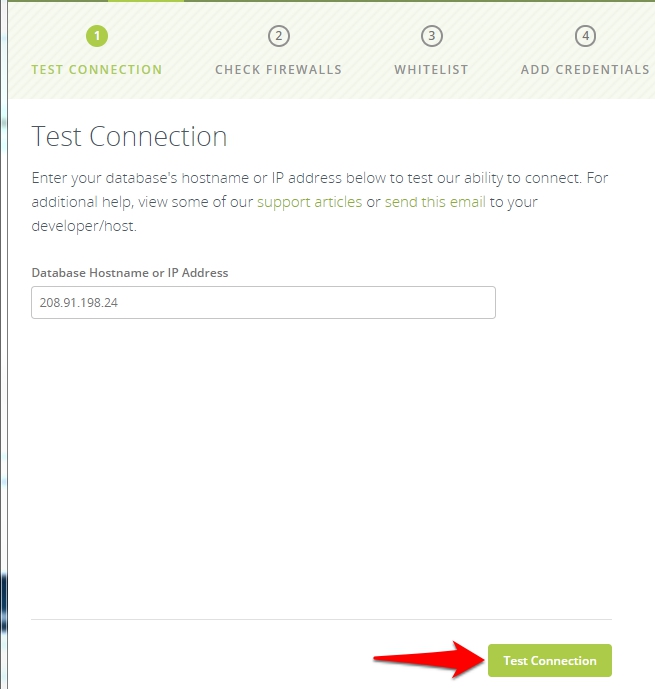 3. Enter the database hostname or server IP address. Click Test Connection.hostname-ip-address