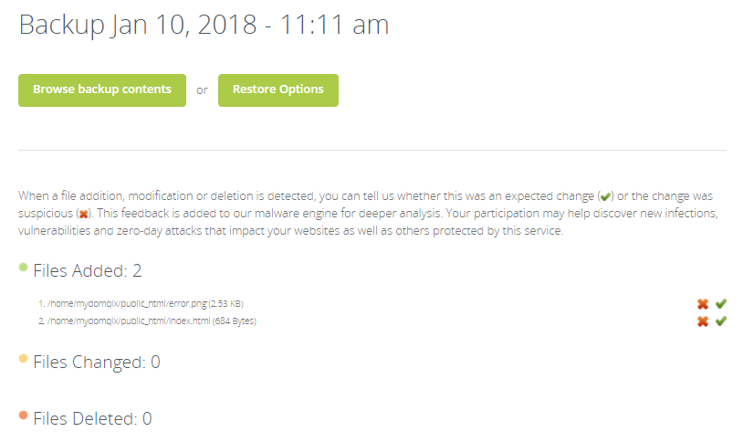 • Automatic Restore: CodeGuard will automatically restore your website by replacing all of your current content with content from a backup