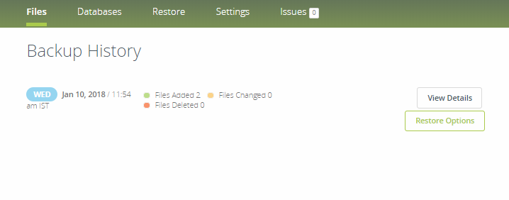 3. Click on the View Details link corresponding to any backup to view the backup details: