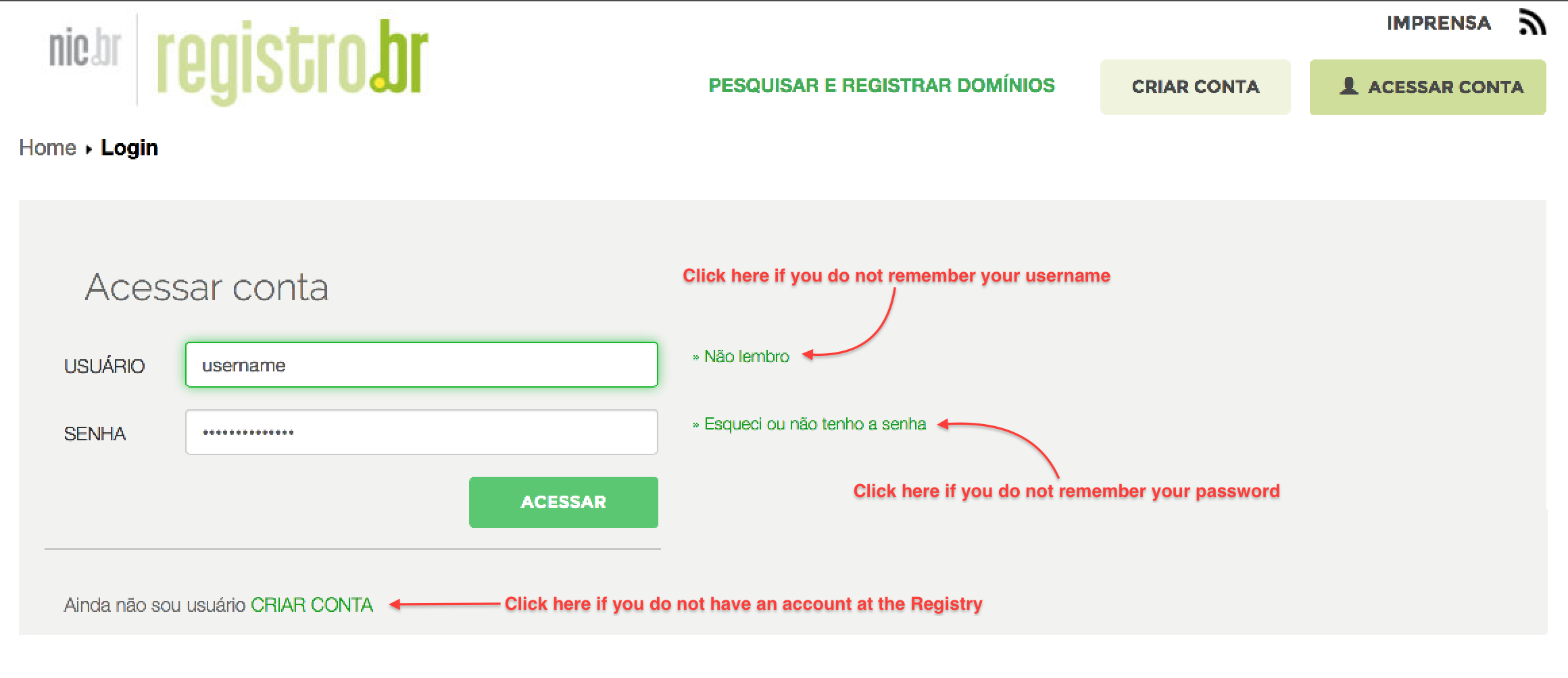 If you do not have an account with the Registry, or don't remember your login details, you can request for them from this page.