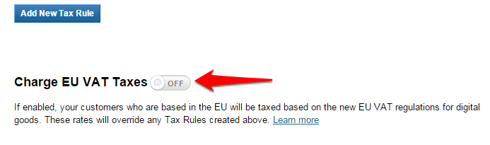 Click on the ON / OFF toggle next to Charge EU VAT Taxes.